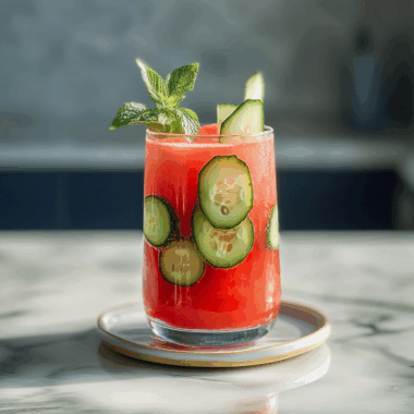 In a blender, combine the fresh watermelon chunks, strawberries, banana, Greek yogurt, and honey or maple syrup. Blend until smooth—think silky waves crashing on a beach.